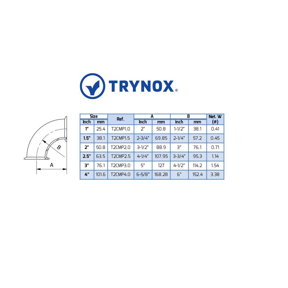 Con el codo sanitario de 90 grados tipo Clamp de Trynox obtenga el rendimiento óptimo…