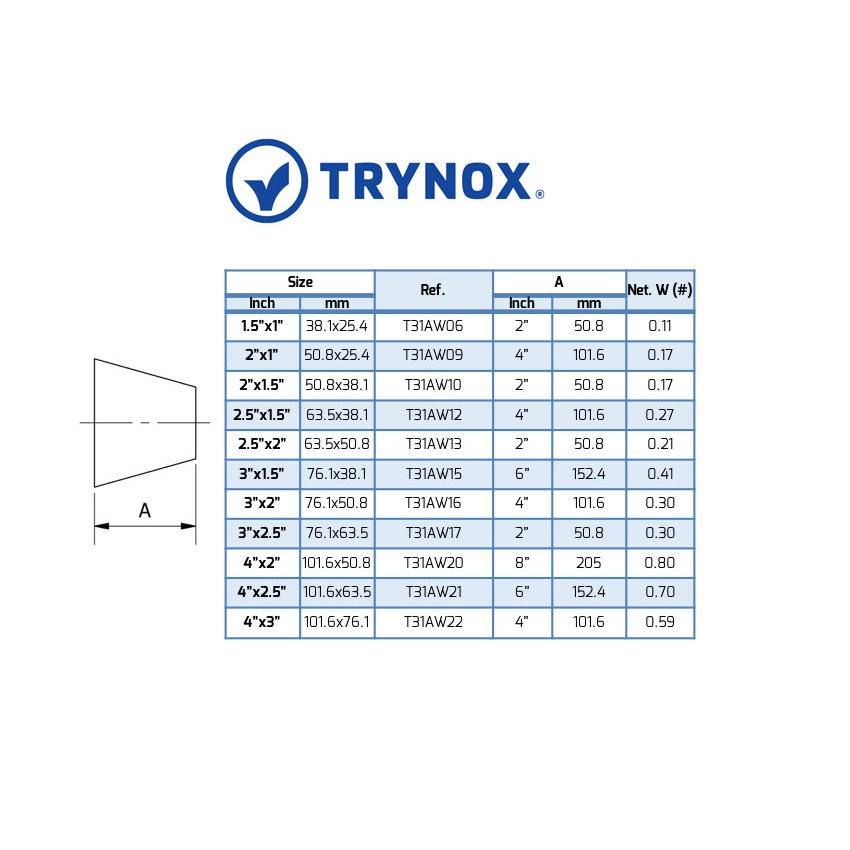* Reducción Concéntrica 3A para soldar Trynox de la serie T31AW