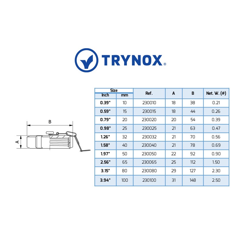 Obtenga un óptimo rendimiento del fluido higiénico y asegure sellos resistentes a las fugas con la tuerca cegadora sanitaria Trynox de Chemseal con cadena.