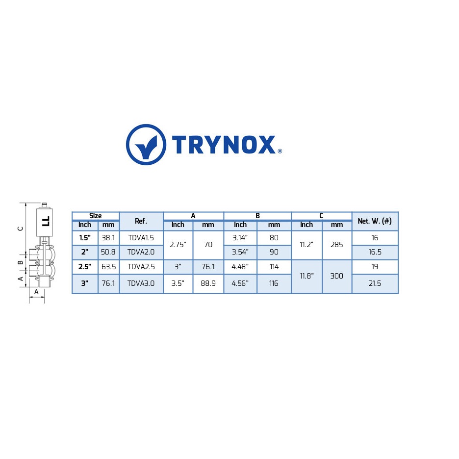 Necesita válvulas sanitarias en acero inoxidable de alta calidad? Está en el lugar digital correcto. Chemseal le ofrece productos específicos como éste para su operación. Mantenga y optimice la calidad de su proceso con nuestros artículos sanitarios en acero inoxidable, incluyendo esta válvula sanitaria diversora. La Válvula Sanitaria Diversora con actuador neumático y conexiones Clamp tipo «LL» de Trynox juega un papel importante a la hora de controlar y desviar los productos o fluidos, gracias a la calidad de sus materiales y de la fabricación de la misma.